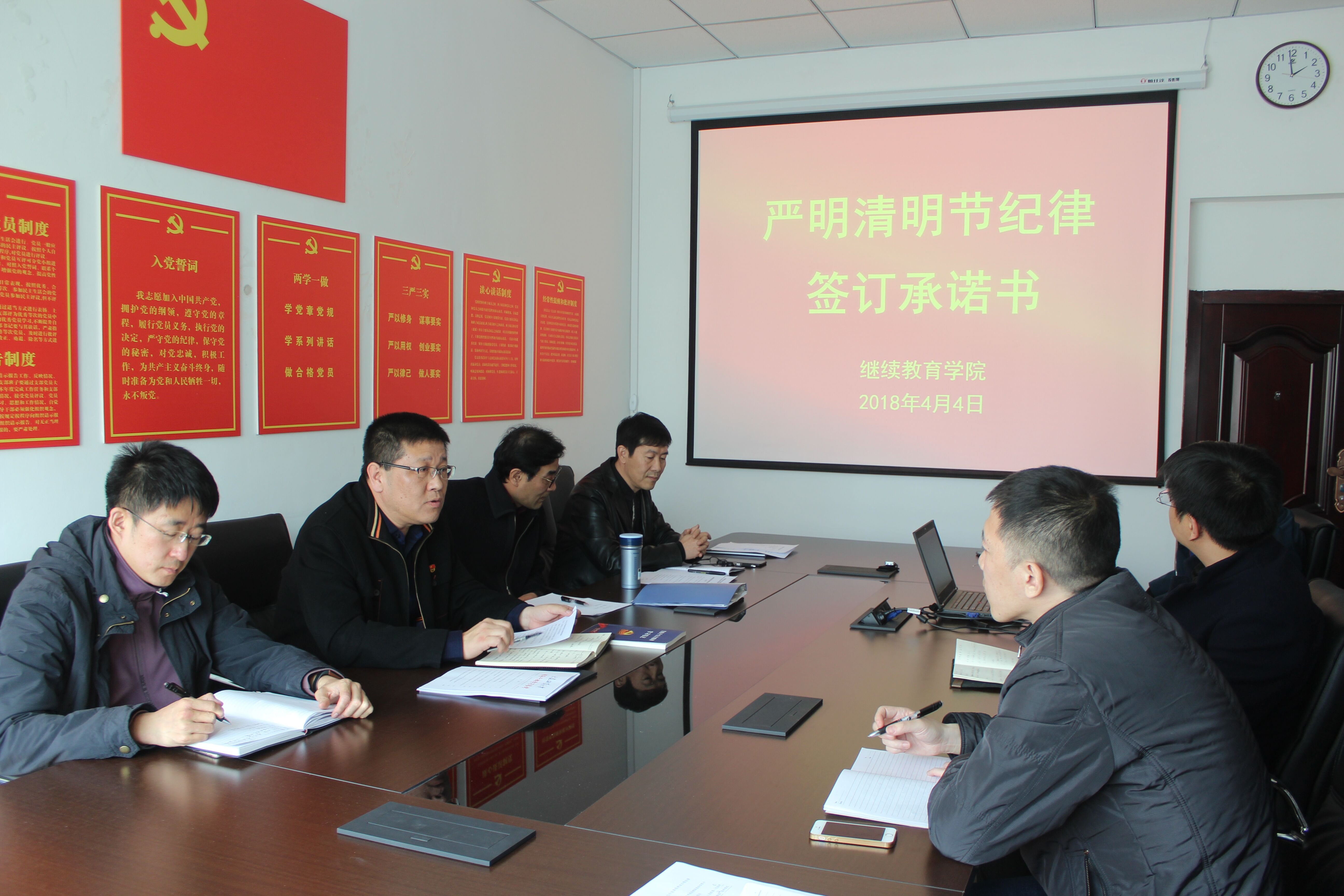 为巩固落实中央八项规定精神成果,深化作风建设,自觉树立廉洁、安全、文明、节俭的祭扫新风,根据公司“关于进一步严明清明期间有关纪律要求的通知”精神,4月4日下午,公司组织全体教职工学习公司有关通知精神,签订“严明清明期间有关纪律”承诺书,并做下承诺,严格遵守十项规定。