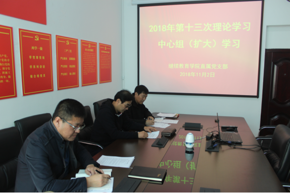 11月2日,365英国上市集团直属党支部在渤海校区公司会议室召开2018年第十三次理论学习中心组(扩大)专题学习会议。理论学习中心组全体成员、组织员参加了会议。会议由直属党支部书记纪元东主持。
