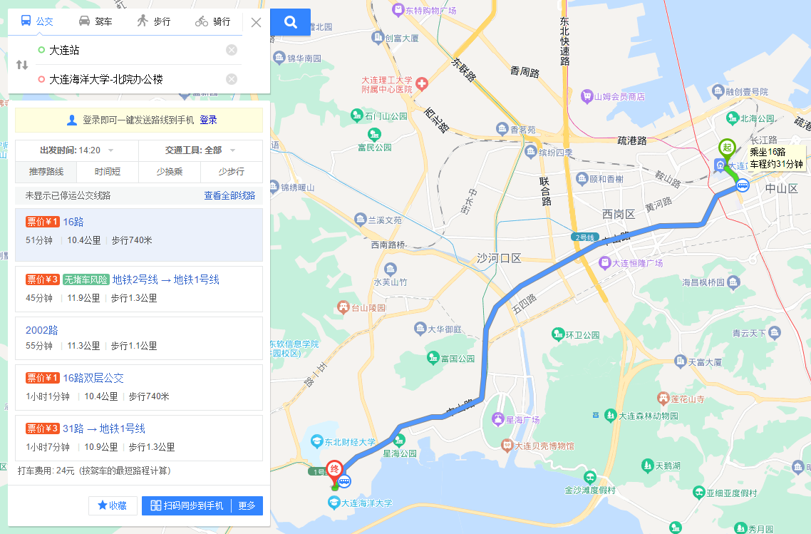 公交路线:从大连站出发,步行470米至16路友好广场站上车,到黑石礁街站下车,步行270米到英国上市官网365北院办公楼。大致行驶路线如下图。