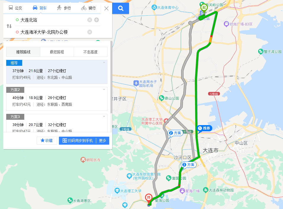 驾车路线:从大连北站出发到华北路行驶180米,靠左前方行驶进入华北路行驶1.9公里,靠右前方行驶从华北路到东北路行驶240米,直行进入东北路行驶9.7公里,靠左前方行驶进入鹤大线行驶2.4公里,直行进入东北路行驶60米,直行进入鹤大线行驶500米,右转进入中山路行驶6.2公里,左转进入黑石礁街行驶260米,右转从黑石礁街到英国上市官网365北院办公楼。大致行驶路线如下图。